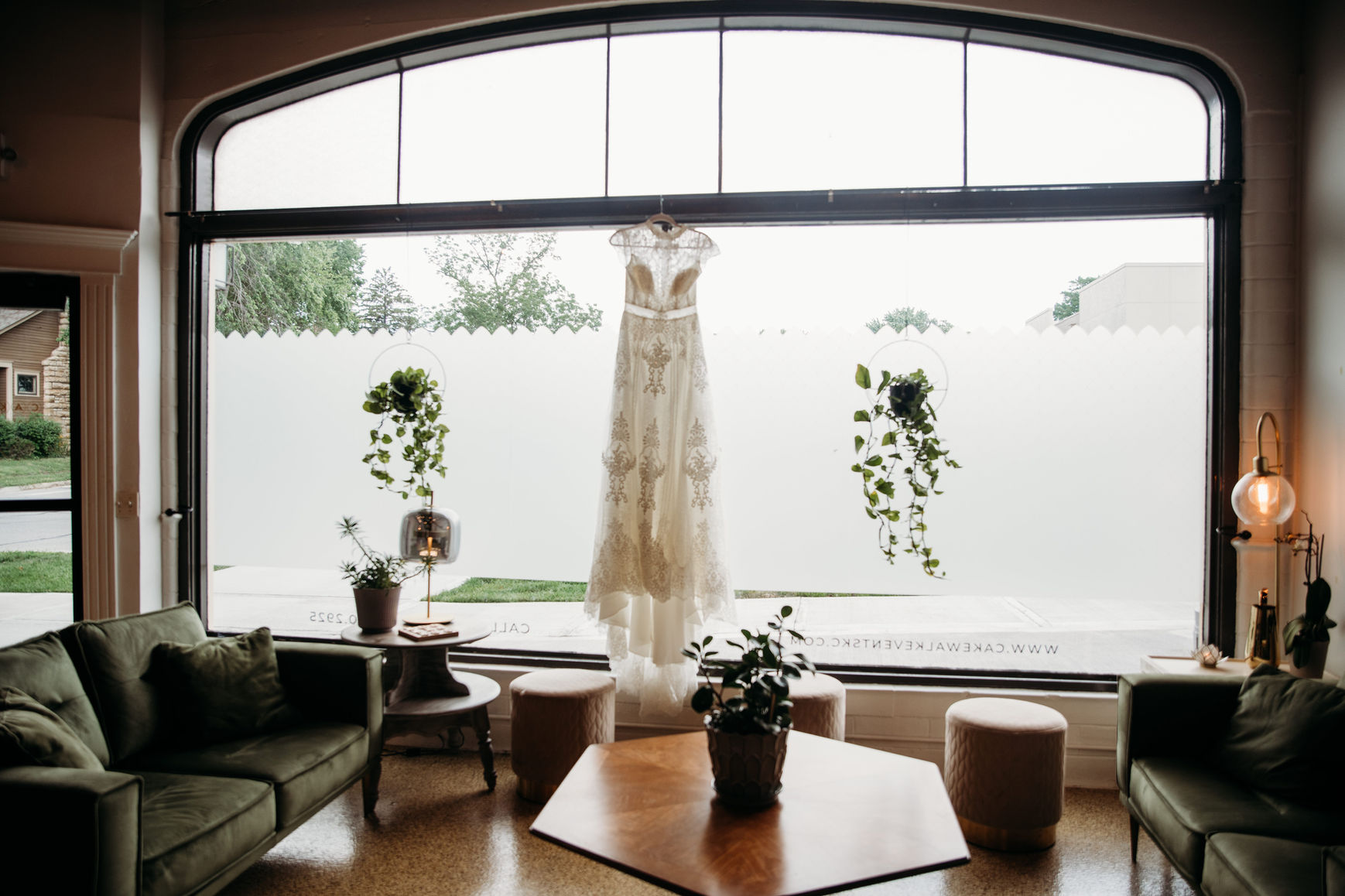 This venue features wall to wall 12 foot arched windows, art deco touches and natural greenery that make your event feel welcoming, modern, and warm. Our new expanded event space boasts a swanky lounge area, with mood lighting, distressed wooden bar, and farmhouse buffet table. Located right off the charming Historic Downtown Liberty Square.
