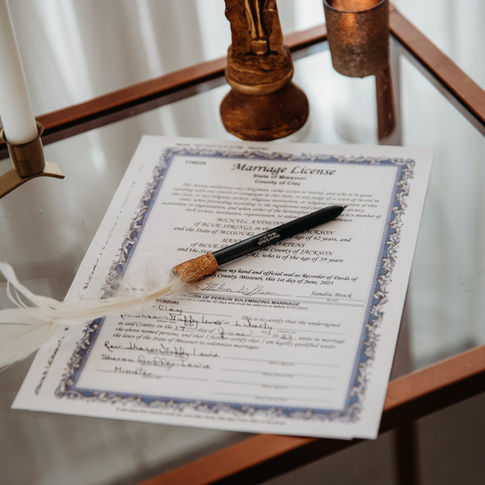 - Interfaith officiant, processional music, and marriage license signing